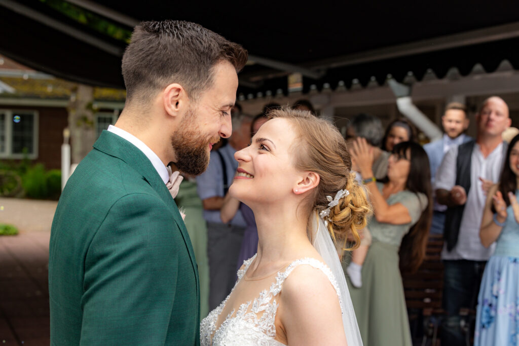 Die Sonne strahlte am Tag der Hochzeit über dem idyllischen Seeufer der Bokel Mühle, wo sich ein junges, verliebtes Paar entschieden hatte, ihr Jawort zu geben. Die Atmosphäre war elektrisierend, als die jungen Gäste, Freunde und Familie sich am Ufer versammelten, um das Brautpaar bei seinem großen Tag zu begleiten. Die Braut, in ihrem wunderschönen weißem Kleid, und der Bräutigam in seinem eleganten Anzug, strahlten vor Glück, als sie sich vor der Traurednerin trafen. Die Trauungszeremonie war voller emotionaler Momente, und als das Paar schließlich einander das Jawort gab, brach ein donnernder Applaus aus, während die Gäste mit Tränen in den Augen die beiden zur Ehe erklärten. Es war ein unvergesslicher Tag, den die Anwesenden lange in Erinnerung behalten würden und die Liebe des jungen Paares schien förmlich zu leuchten, als sie Hand in Hand in ihre gemeinsame Zukunft schritten.